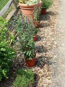 Hard to tell, but the driveway drops off to the left. We added timbers so we could build up the soil to be (almost) level with the driveway.