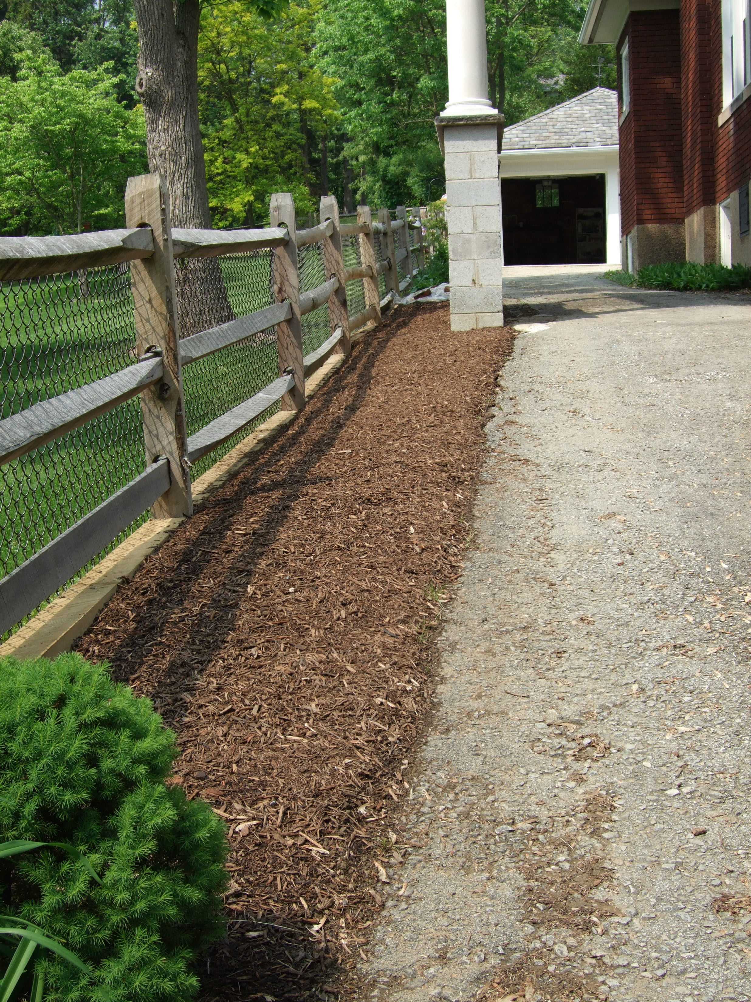 Hard to tell, but the driveway drops off to the left. We added timbers so we could build up the soil to be (almost) level with the driveway.