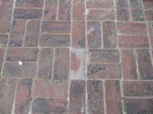 The trusty car jack helped us level it (for now). Four cans of spray paint gave it a happy face. And some leftover wood from the dismantled swing set and salvaged bricks from the driveway pier demo added a cute little stoop.