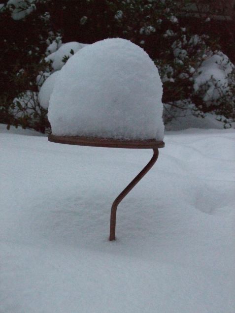 But it was still magical. Especially since the constant stop-n-go snow over the past few days has every object in the garden wearing a puffy white Russian hat.