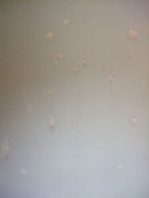 So now, with the windows almost ready to prime, I’ve also started working on the walls. Did I mention they must have had the C-Team plasterers when they built this house? I’ve never seen such a sloppy plastering job — full of scrapes and gouges and divots that previous owners haven’t helped at all. So, in addition to filling the nail holes I made, I’m also trying to fill in some of the worst of the wall flaws — again, without making it my life’s work.