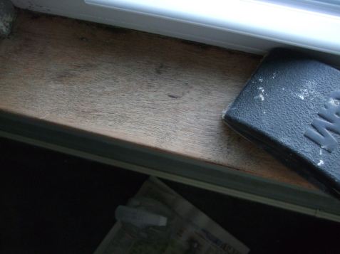 My philosophy for the rest of the window frames and woodwork in the room (and in the entire house) is to scrape off as little of the bad latex as possible — some has to be scraped, for sure, and all of it sanded to death, but my goal is to spend as little of my precious time on this earth scraping paint as possible. This yields woodwork that looks like this.