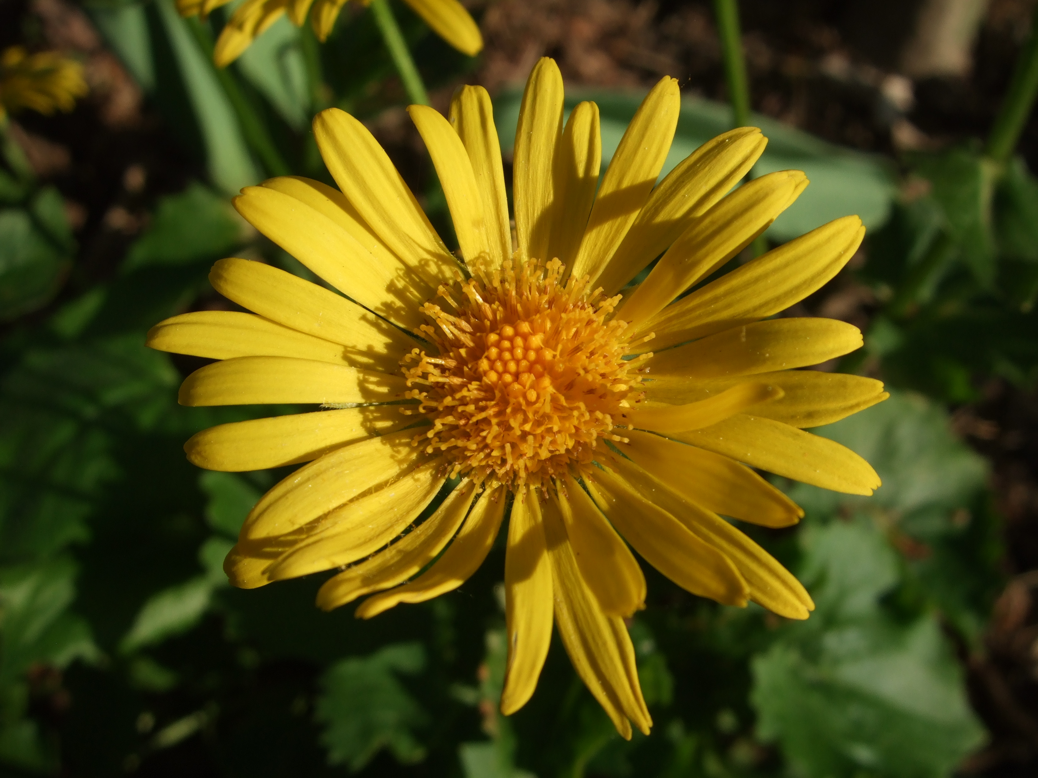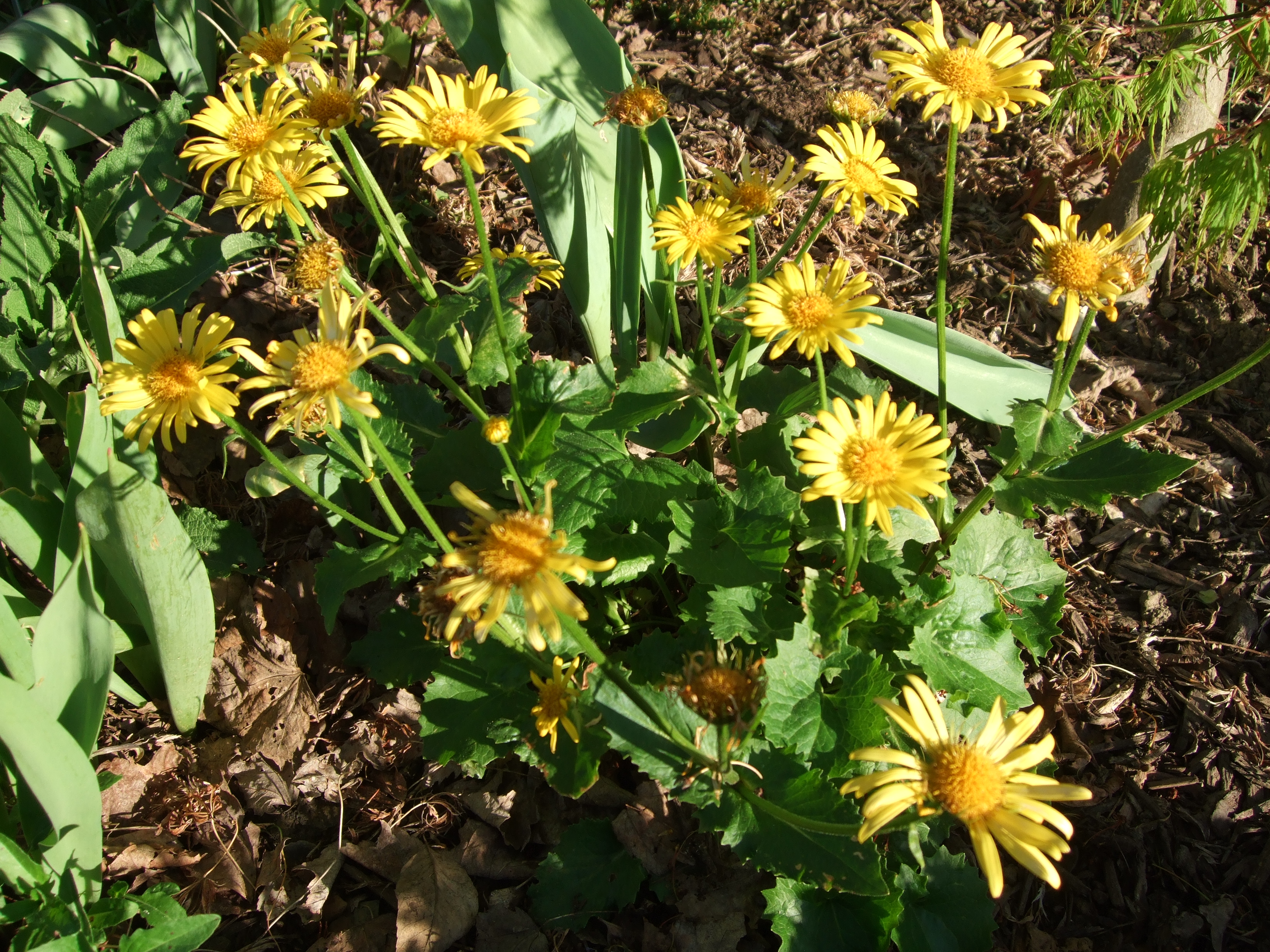 This cheerful one looks vaguely like a dandelion, but is actually a perennial I planted last year that’s doing well so far. I can’t remember the name, although I just saw it again at Lowe’s the other day. Oh well, goodoldwhatsitsname is quite a pretty little springtime treat. (UPDATE A FEW DAYS LATER: Not that anyone cares, but the name came to me in a flash — it’s called Leopard’s Bane, so named, I learned, because it was once thought to be poisonous to animals. And it’s also been used medicinally — but don’t ingest too much, because it’s toxic. I think I will just confine myself to looking at it.)