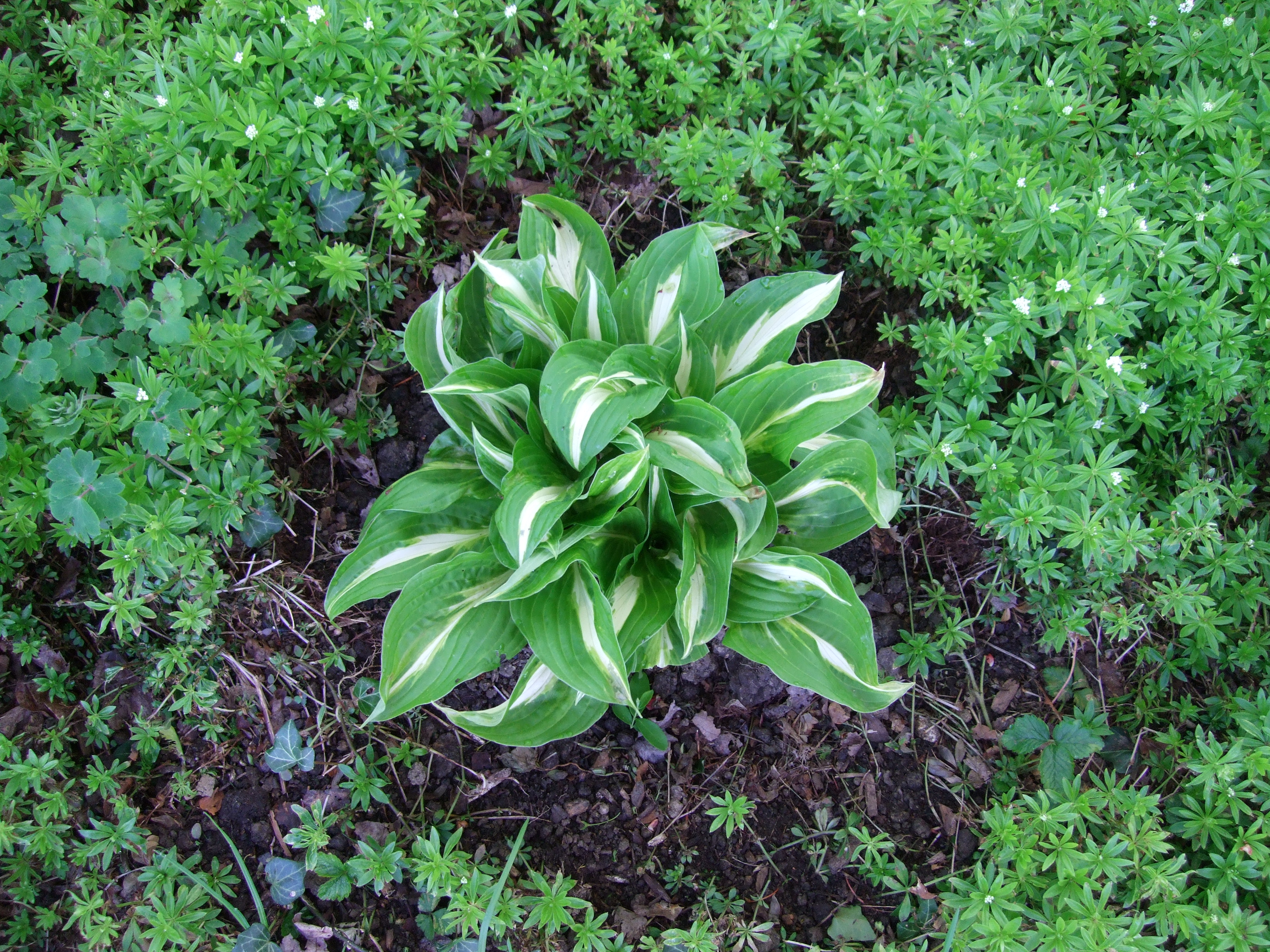 The hosta now have breathing room. I can feel them sighing in relief not to have the sweet woodruff choking them.