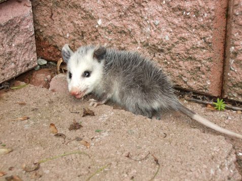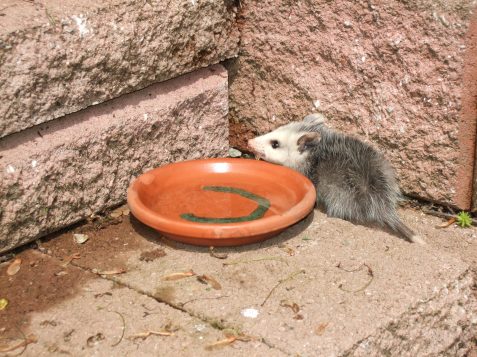 We didn’t know much about opossums, and I was thinking, “Cute, but not in my backyard, please!” I was full of suggestions that involved Mike putting on his gloves and depositing him near one of the massive woodpiles in the junk-neighbor’s yard. I also wasn’t anxious to watch him die in front of us.